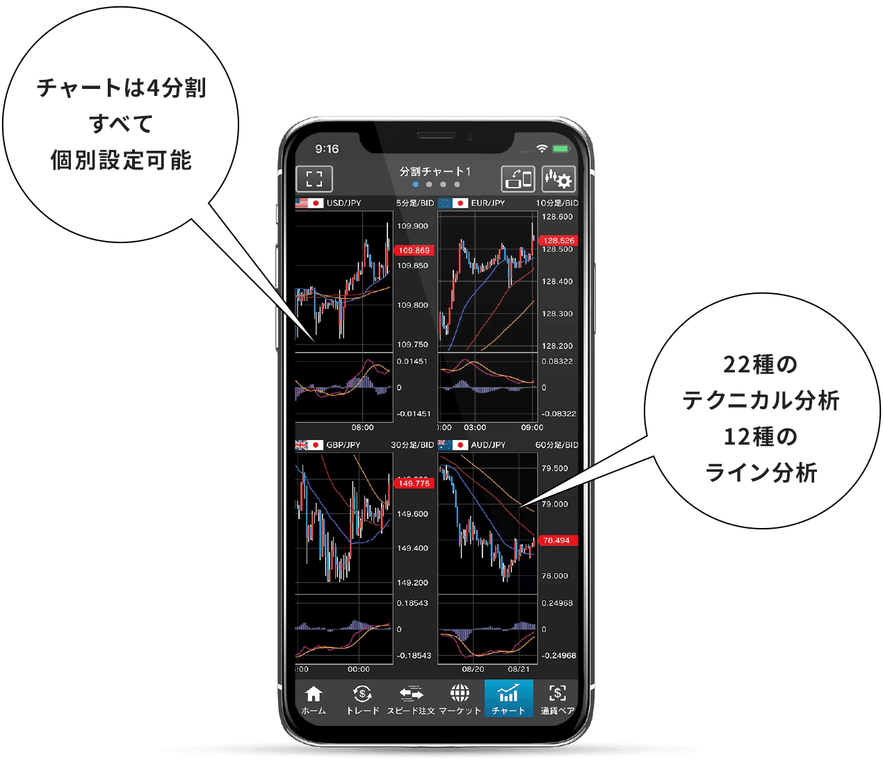 ※3 「業界最狭水準スプレッドキャンペーン」スプレッド(対象期間:2025年9月29日(月)午前9時00分~2025年11月1日(土)午前3時00分、掲示時間帯:対象期間中の各営業日午前9時~翌午前3時)。左記以外の時間帯のスプレッドは次の通りです。南アフリカランド/円:0.9~6.0銭、トルコリラ/円:1.7~6.0銭、ポンド/円:0.9~15.0銭、ユーロ/円:0.5~10.0銭、ユーロ/米ドル:0.4~8.0pips、NZドル/円:1.2~10.0銭、豪ドル/円0.7~10.0銭、豪ドル/米ドル:0.9~6.0pips、カナダドル/円:1.7~10.0銭